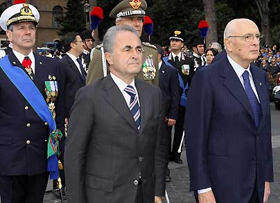 Il Presidente Giorgio Napolitano con a fianco il Ministro della Difesa Arturo Parisi, poco prima della deposizione di una corona d'alloro sulla Tomba del Milite Ignoto, in occasione della Festa Nazionale della Repubblica