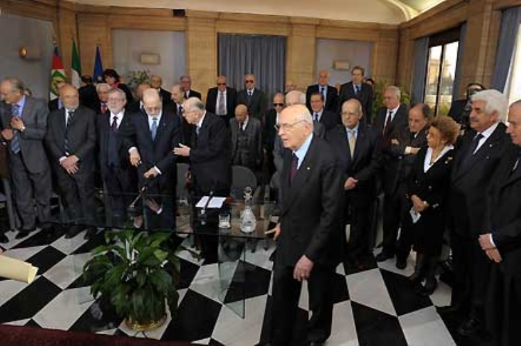 Il Presidente Giorgio Napolitano al Palazzo della Consulta in occasione della cerimonia celebrativa del 60° anniversario della Costituzione