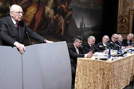 Il Presidente Giorgio Napolitano durante il suo intervento al Teatro Regio