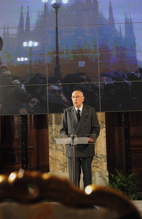 Il Presidente Giorgio Napolitano in un momento della cerimonia del Giorno della Memoria dedicato alle vittime del terrorismo
