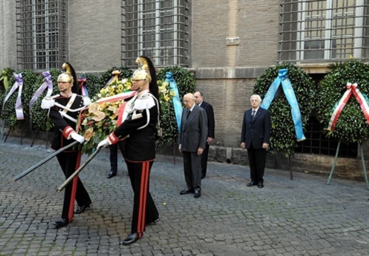 Il Presidente Giorgio Napolitano rende omaggio alla lapide di Aldo Moro nel 31° anniversario dell'uccisione dello Statista democristiano in via Caetani