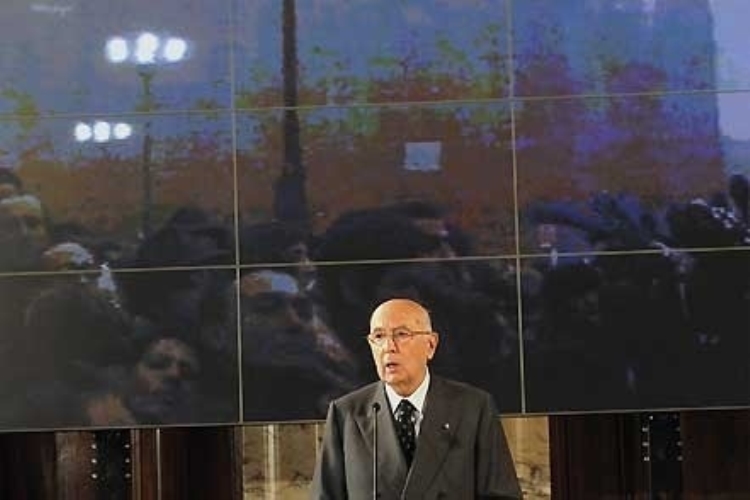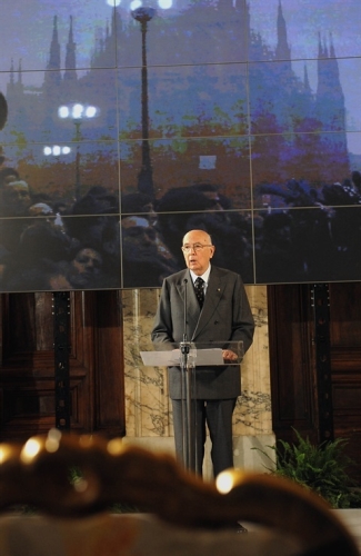 Il Presidente Giorgio Napolitano durante il suo intervento in occasione della celebrazione del Giorno della Memoria