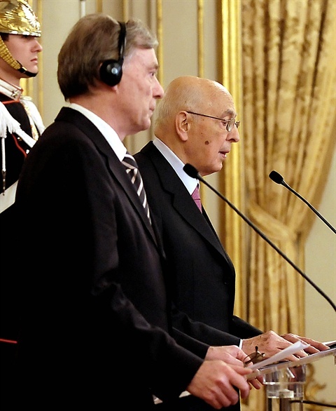 I Presidenti della Repubblica Italiana e della Repubblica Federale di Germania, Napolitano e Kohler durante la dichiarazione congiunta