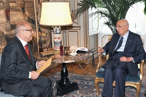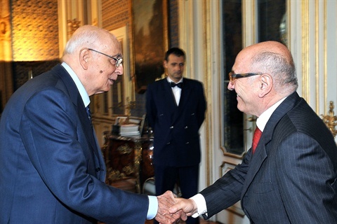 Il Presidente Giorgio Napolitano accoglie Ernesto Lupo, Primo Presidente della Corte Suprema di Cassazione, al Quirinale