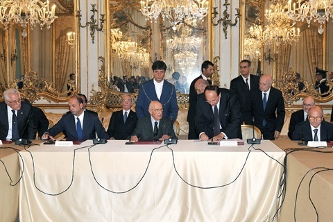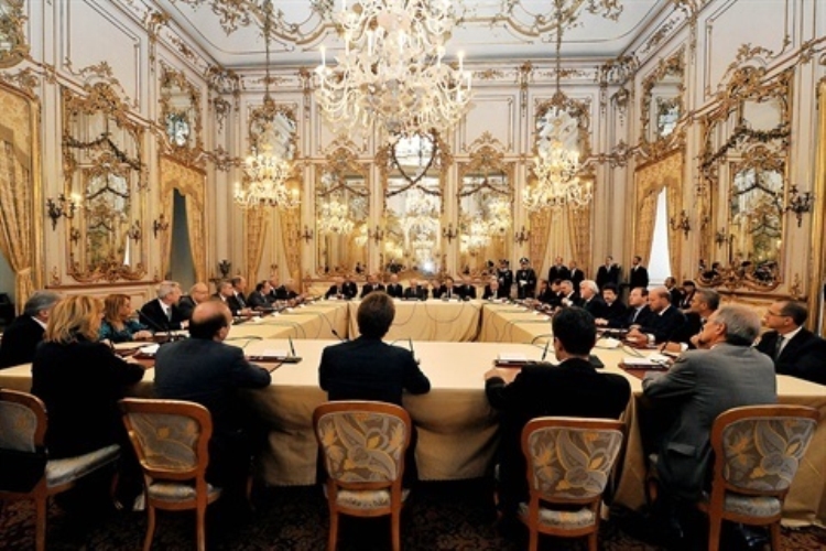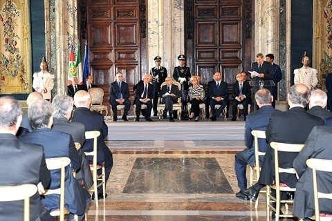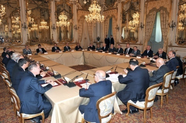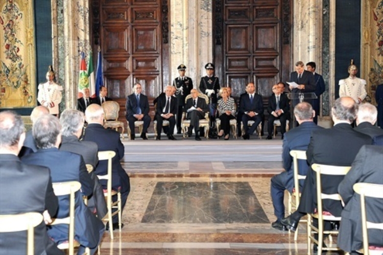 Il Presidente Giorgio Napolitano con i componenti il nuovo Consiglio Superiore della Magistratura in occasione della cerimonia di insediamento