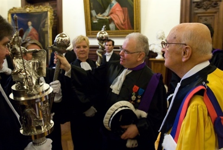 Il Presidente Giorgio Napolitano riceve dal Presidente dell'Università Sorbonne-Paris IV Georges Molinié, il dottorato "honoris causa"