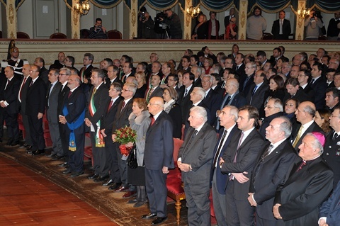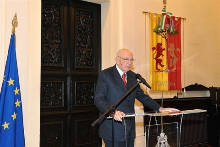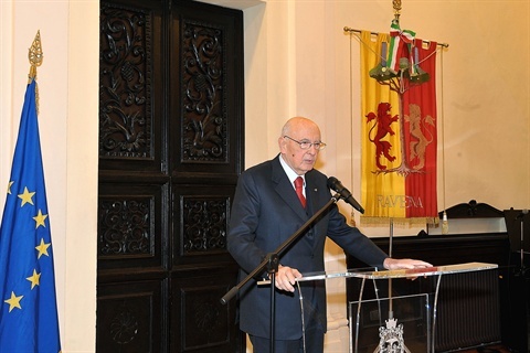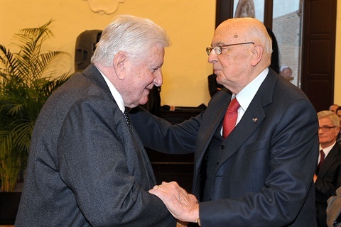 Il Presidente Giorgio Napolitano con il Sen. Sergio Zavoli in occasione della commemorazione di Benigno Zaccagnini e Arrigo Boldrini