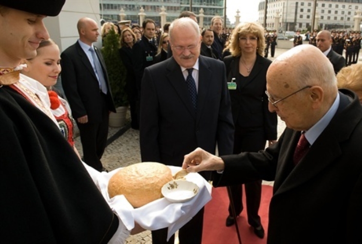 Il Presidente Giorgio Napolitano al suo arrivo all'aeroporto di Bratislava, in occasione della visita ufficiale nella Repubblica Slovacca