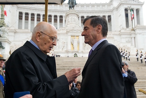 Il PresidenteGiorgio Napolitano al termine della cerimonia per il 66° anniversario della Liberazione,