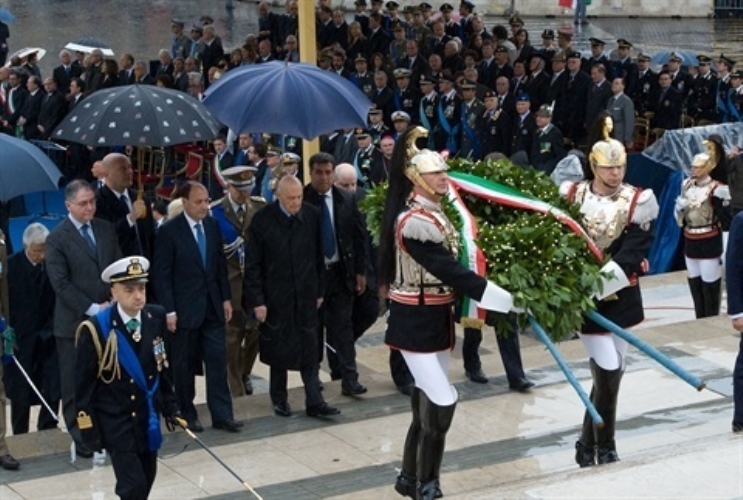 Il Presidente Giorgio Napolitano depone una corona d'alloro nella ricorrenza del 66° anniversario della Liberazione