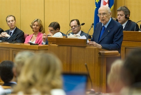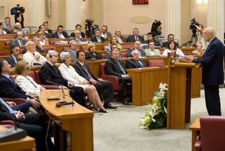 Il Presidente della Repubblica Giorgio Napolitano durante l'intervento alla sede del Parlamento Croato