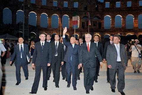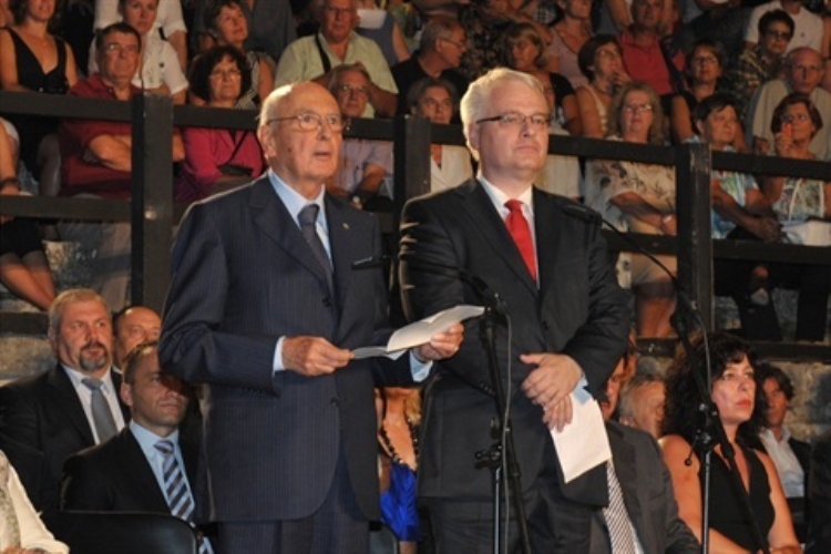 Il Presidente Giorgio Napolitano e il Presidente della Repubblica di Croazia Ivo Josipovic all'Arena di Pola