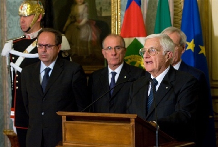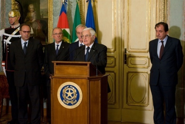 Il Segretario Generale della Presidenza della Repubblica Donato Marra legge il comunicato che annuncia le dimissioni del Presidente del Consiglio Silvio Berlusconi
