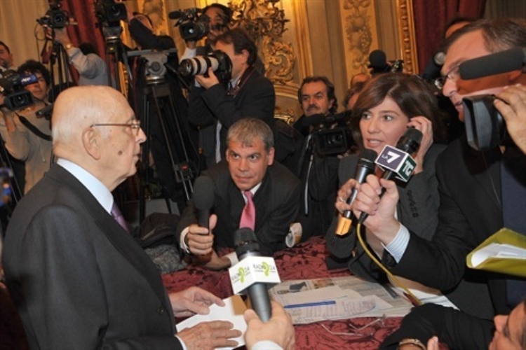 Il Presidente Giorgio Napolitano risponde alle domande dei giornalisti al termine del Giuramento del Governo Monti