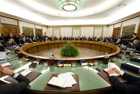 Il Presidente Giorgio Napolitano con il Procuratore Generale presso la Corte di Cassazione Vitaliano Esposito, il Primo Presidente della Corte di Cassazione Ernesto Lupo e il Vice Presidente del Consiglio Superiore della Magistratura Michele Vietti, poco prima dell'Adunanza pubblica del CSM