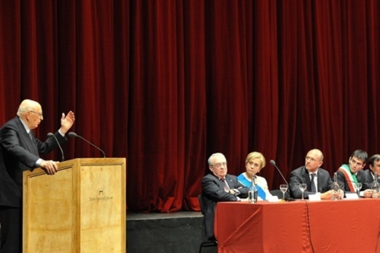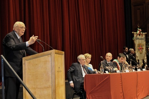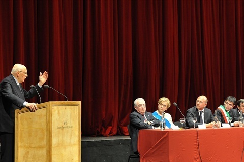 Il Presidente Giorgio Napolitano durante il suo intervento in occasione del Convegno dal titolo "Il contributo della Sardegna all'Unità d'Italia" al Teatro Lirico di Cagliari