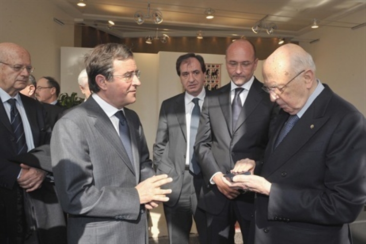 Il Presidente Giorgio Napolitano riceve da parte del Rettore dell'Università degli Studi di Cagliari Prof. Giovanni Melis il sigillo dell'Ateneo