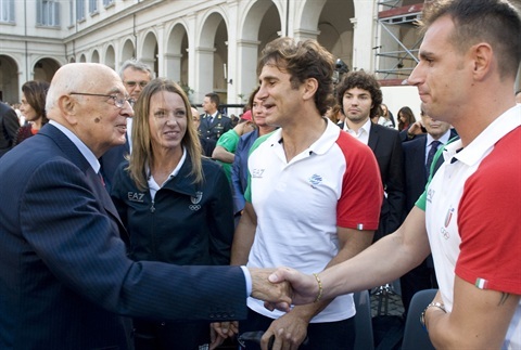 Il Presidente Giorgio Napolitano saluta gli Olimpionici Valentina Vezzali, Alex Zanardi e Carlo Molfetta