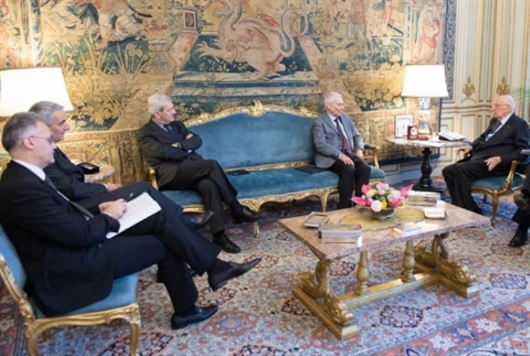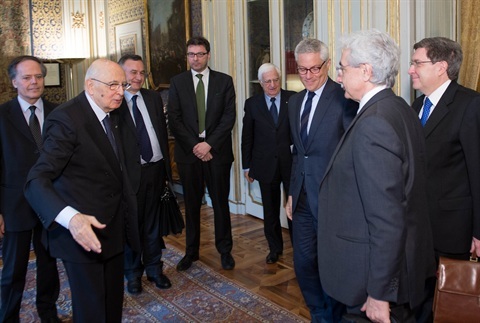 Il Presidente Giorgio Napolitano con i componenti il gruppo di lavoro sui temi istituzionali