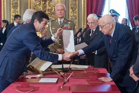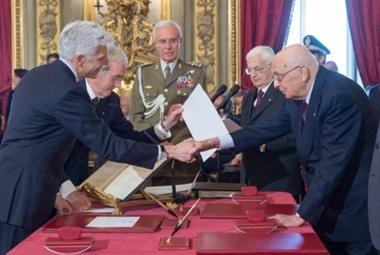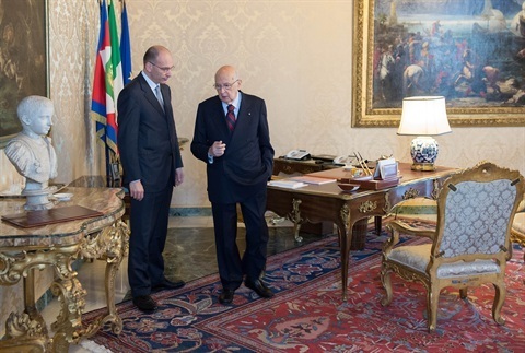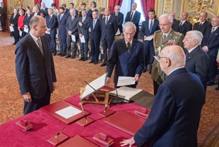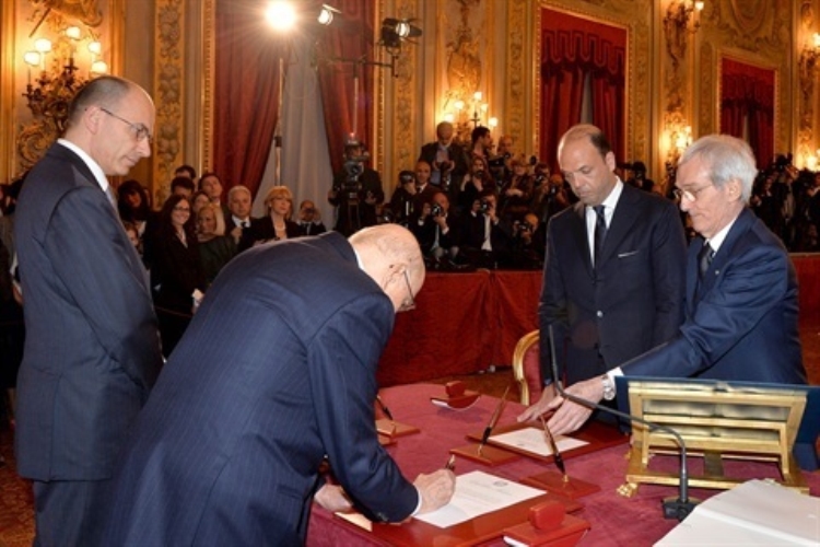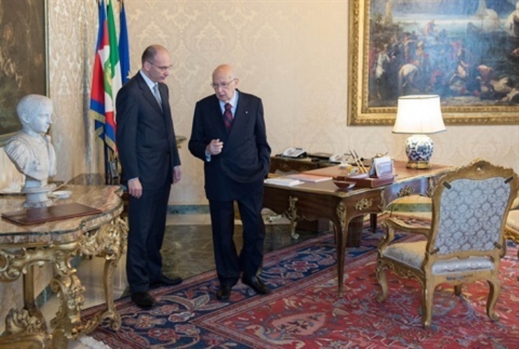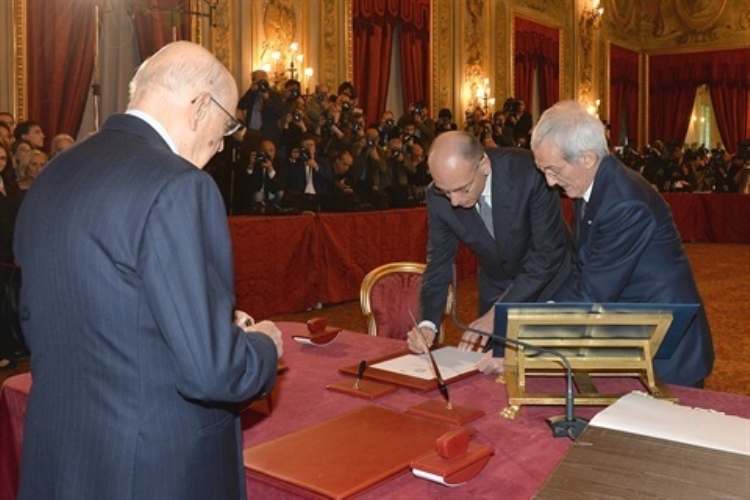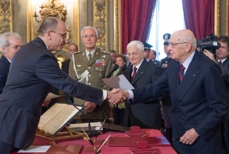 Il Presidente Giorgio Napolitano e il Presidente del Consiglio Enrico Letta nel corso del giuramento