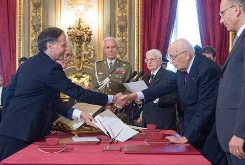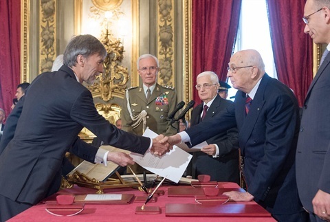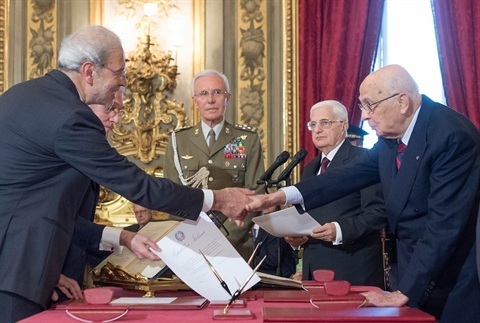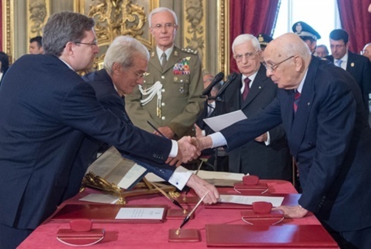 Il Presidente Giorgio Napolitano con il neo Ministro per gli Affari Europei Enzo Moavero Milanesi