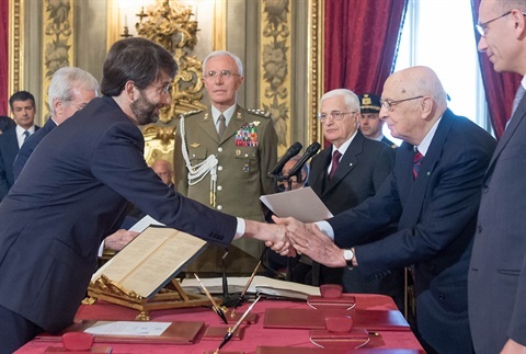 Il Presidente Giorgio Napolitano con il neo Ministro per i Rapporti con il Parlamento e coordinamento attività di governo Dario Franceschini