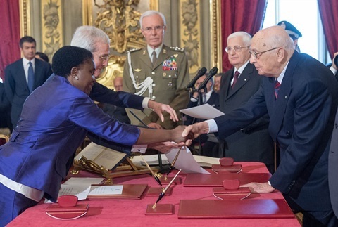 Il Presidente Giorgio Napolitano con il neo Ministro per l'Integrazione Cecile Kyenge