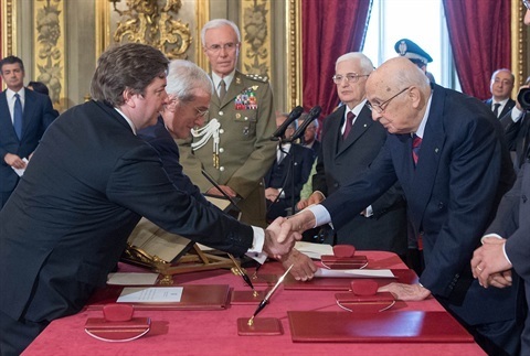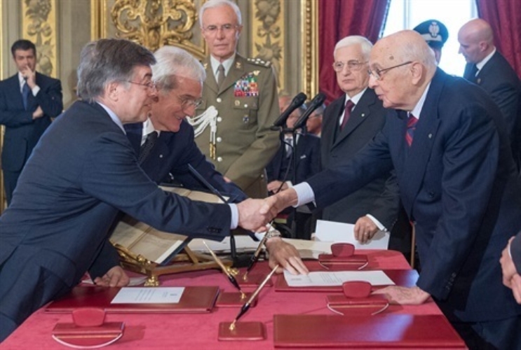 Il Presidente Giorgio Napolitano con il neo Ministro per gli Affari Regionali e le Autonomie Graziano Del Rio