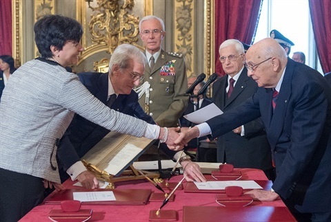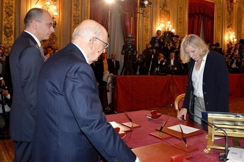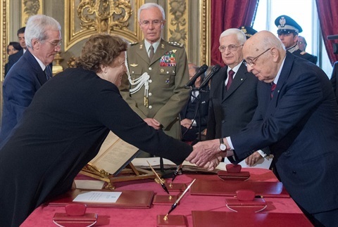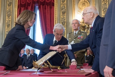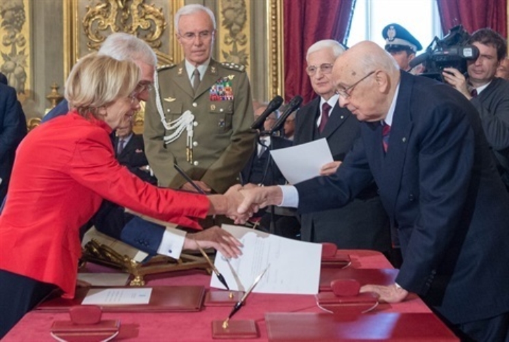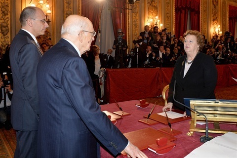 Il Presidente Giorgio Napolitano con il neo Ministro per gli Affari Esteri Emma Bonino