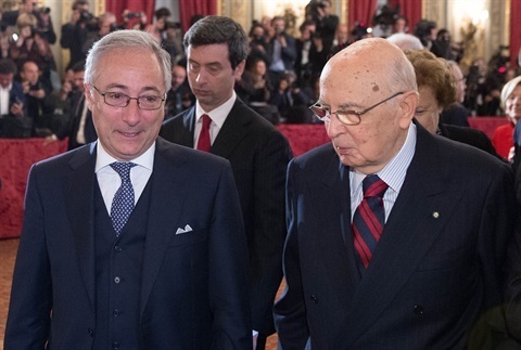 Il Presidente Giorgio Napolitano con il neo Ministro dell'Economia e delle Finanze Fabrizio Saccomanni