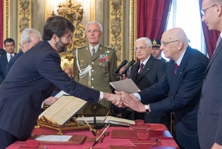 Il Presidente Giorgio Napolitano con il neo Ministro per i Beni Attività Culturali e Turismo Massimo Bray