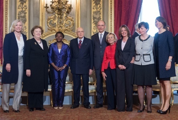 Il Presidente Giorgio Napolitano con i Ministri donna che compongono il Governo Letta