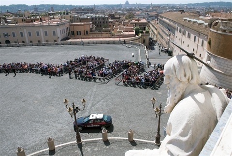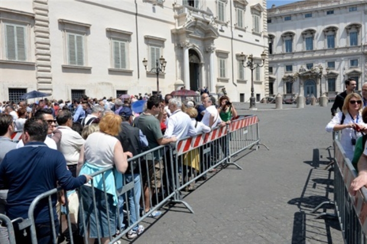 Gente in attesa di entrare al Quirinale per l'apertura al pubblico dei Giardini per la Festa Nazionale della Repubblica