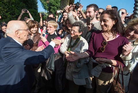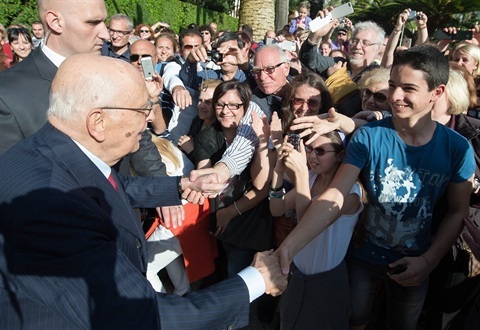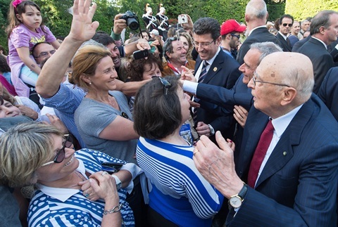 Il Presidente Giorgio Napolitano saluta il pubblico in visita ai giardini del Palazzo del Quirinale in occasione della Festa della Repubblica
