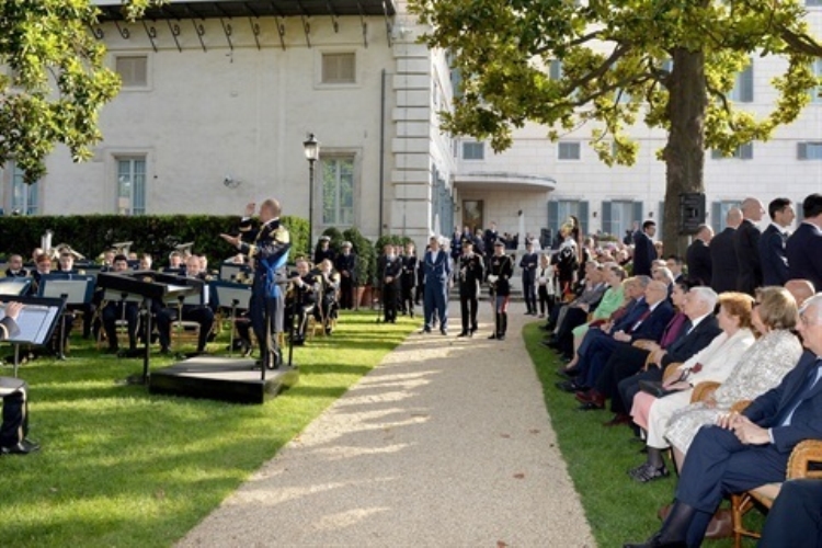 Il Presidente Giorgio Napolitano in un momento del concerto eseguito dalla Banda della Marina Militare in occasione dell'apertura al pubblico dei Giardini del Quirinale per la Festa Nazionale della Repubblica
