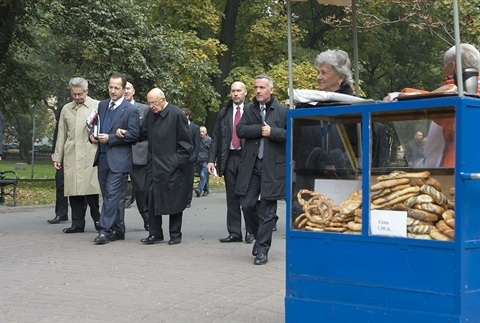 Il Presidente Giorgio Napolitano con l'Ambasciatore d'Italia a Varsavia Riccardo Guariglia durante una breve passeggiata nel centro città