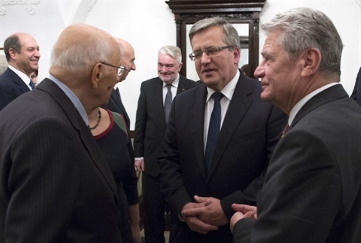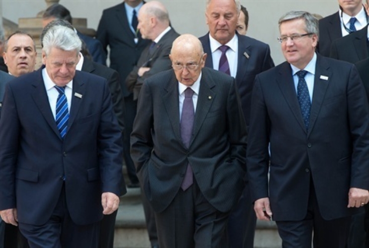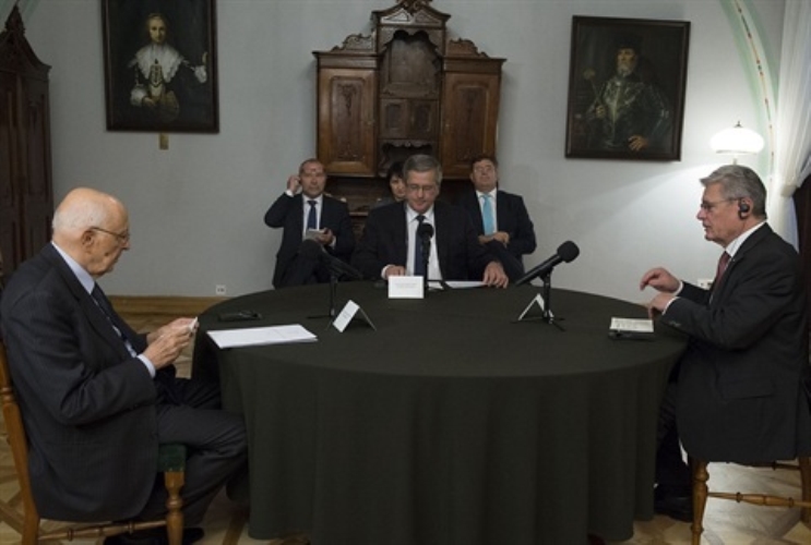 Il Presidente Giorgio Napolitano con il Presidente della Polonia Bronislaw Komorowski e il Presidente della Repubblica Federale di Germania Joachim Gauck