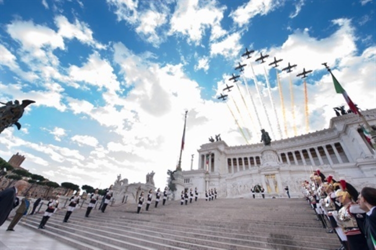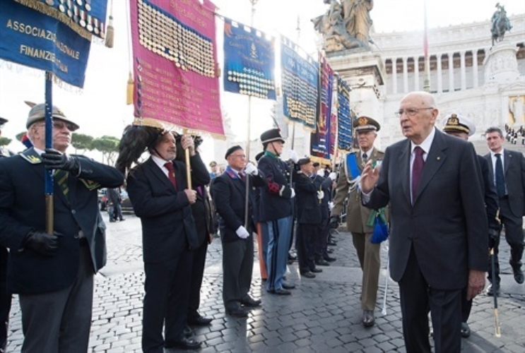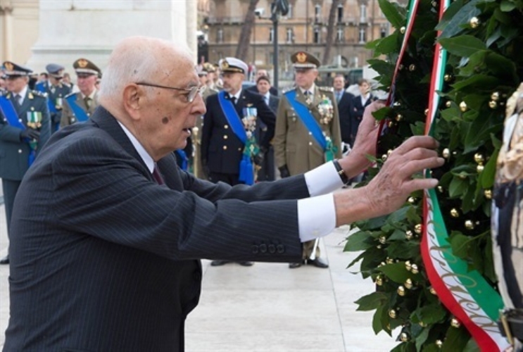 Il Presidente Giorgio Napolitano depone una corona d'alloro sulla Tomba del Milite Ignoto all'Altare della Patria in occasione delle celebrazioni nel Giorno dell'Unità Nazionale e Giornata delle Forze Armate