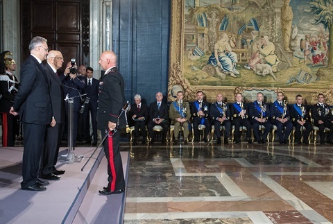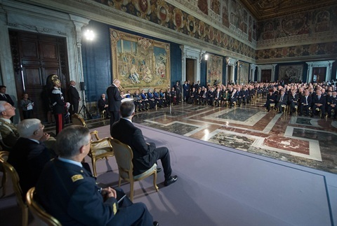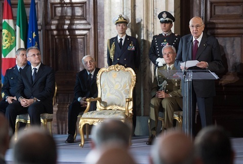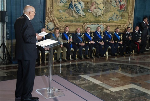 Il Presidente Giorgio Napolitano nel corso della consegna delle onorificenze dell'OMI