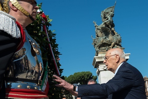 Il Presidente Giorgio Napolitano in occasione della deposizione di una corona d'alloro al Milite Ignoto