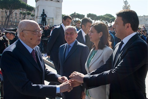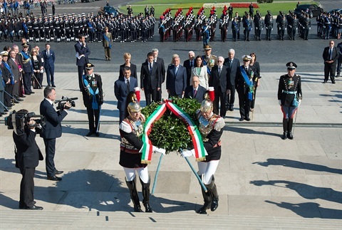 Il Presidente Giorgio Napolitano depone una corona d'alloro all'Altare della Patria