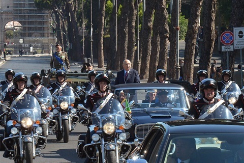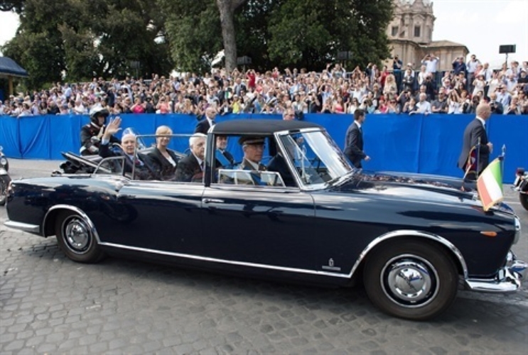 Il Presidente Giorgio Napolitano a bordo della Lancia Flaminia lascia via dei Fori Imperiali al termine della parata Militare