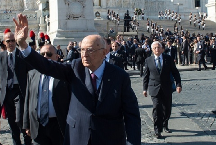 Il Presidente Giorgio Napolitano lascia Piazza Venezia al termine della cerimonia all'Altare della Patria