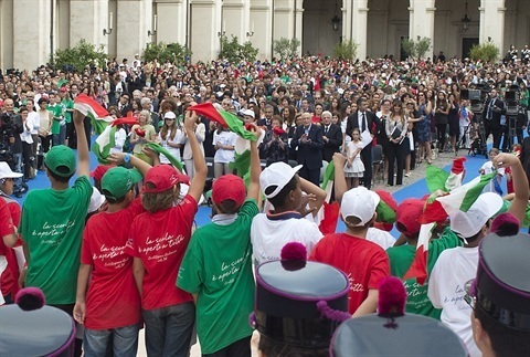 Il Presidente Giorgio Napolitano saluta alcuni bambini al termine della cerimonia di inaugurazione dell'anno scolastico