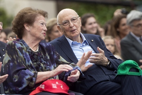 Il Presidente Giorgio Napolitano e la Sig,ra Clio nel corso della cerimonia di inaugurazione dell'anno scolastico