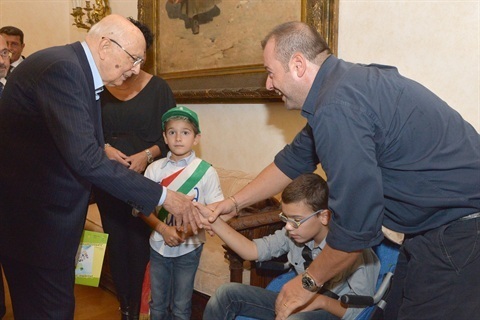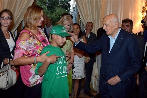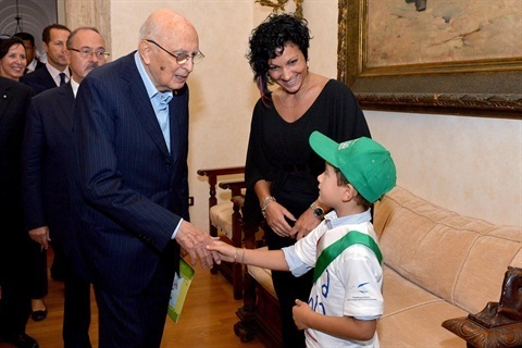 Il Presidente Giorgio Napolitano con un alunno della scuola media Di Donato di Roma