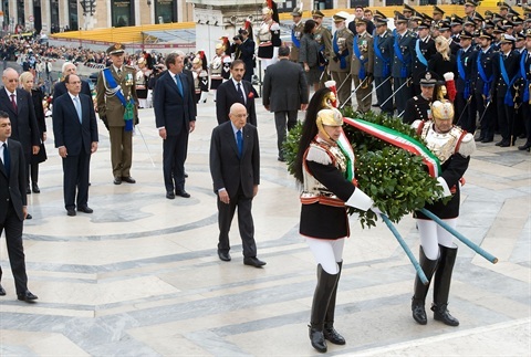 Il Presidente Giorgio Napolitano durante la deposizione di una corona d'alloro sulla Tomba del Milite Ignoto