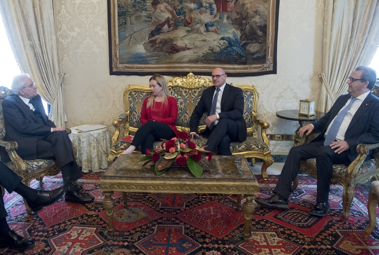 Il Presidente Sergio Mattarella con i Gruppi "Fratelli d'Italia" del Senato della Repubblica e della Camera dei deputati in occasione delle consultazioni