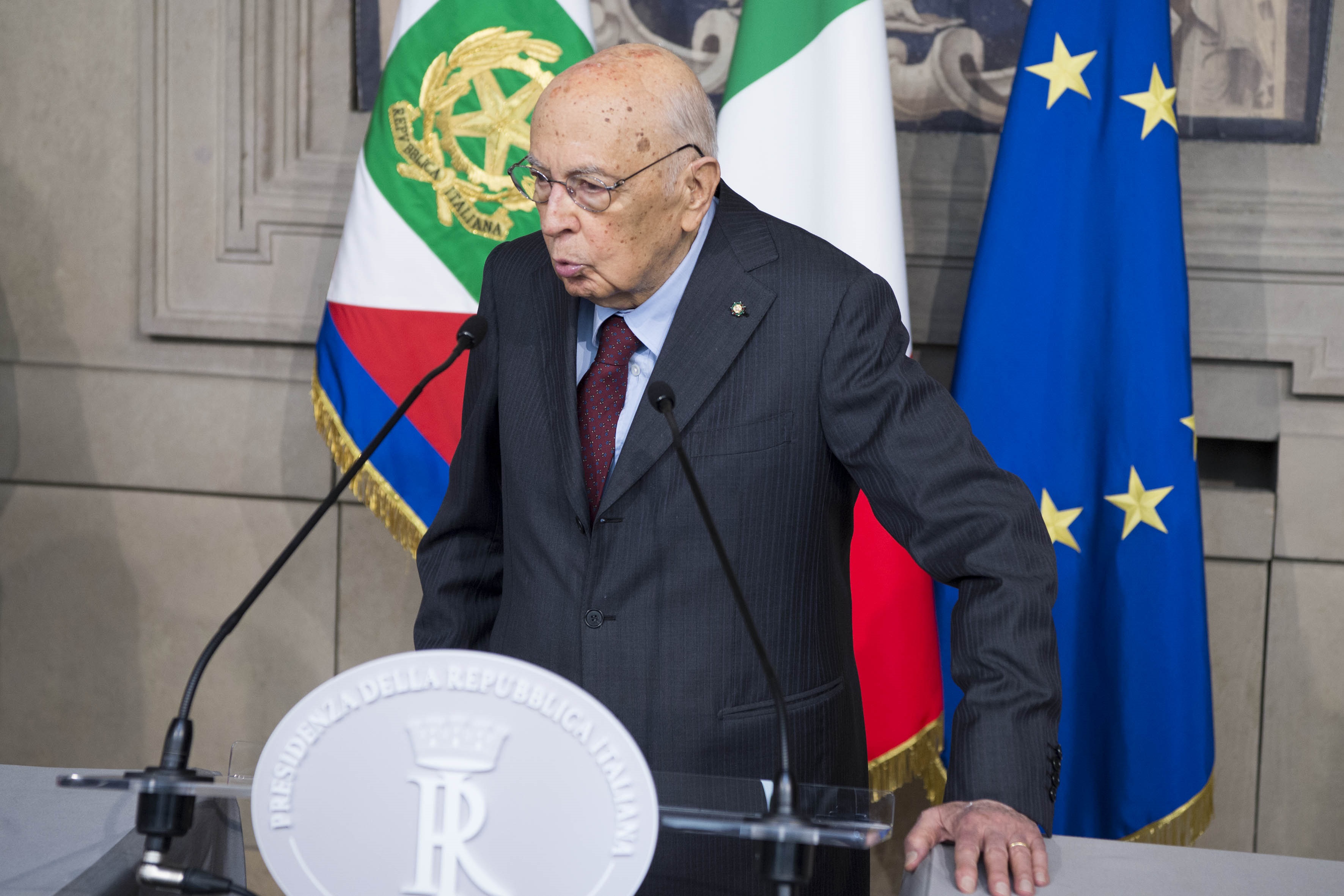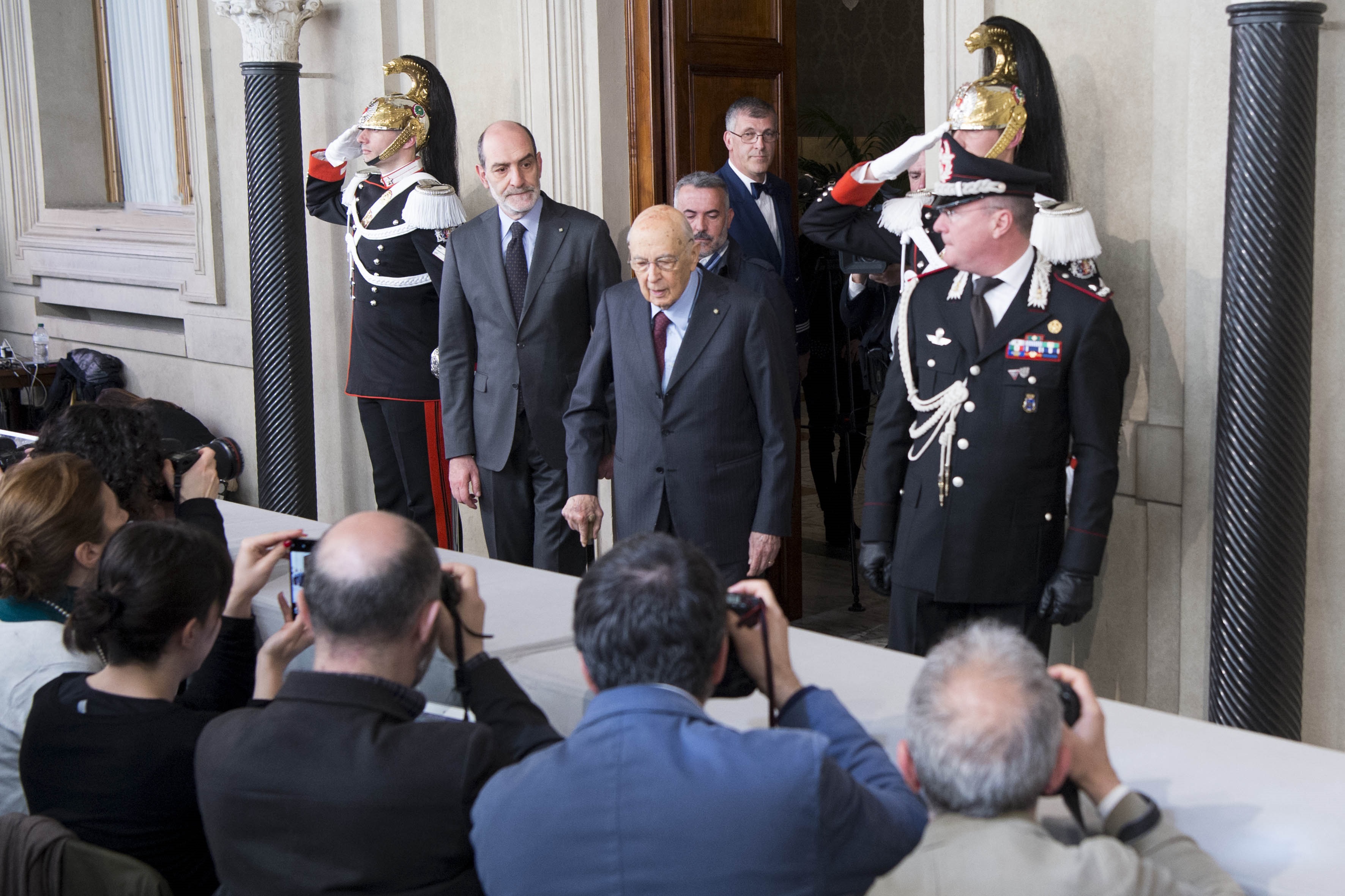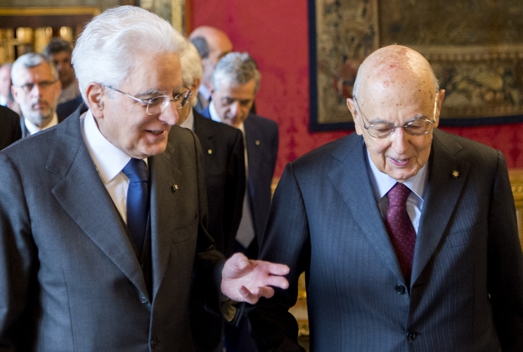 Il Presidente Sergio Mattarella con il Presidente Emerito della Repubblica, Sen. Giorgio Napolitano in occasione delle consultazioni