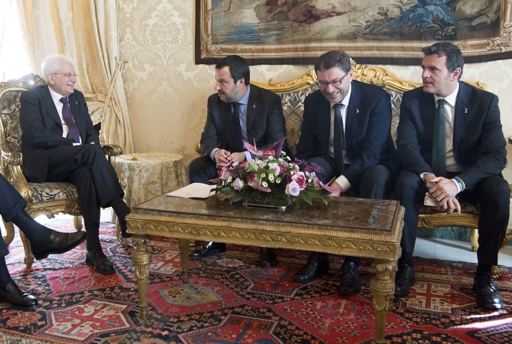 Il Presidente Sergio Mattarella con la delegazione della "Lega - Salvini Premier" in occasione delle consultazioni
